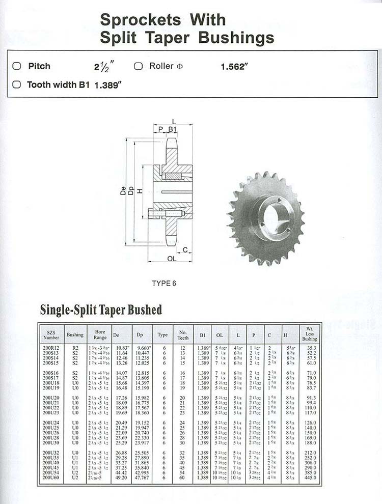 配劈開式錐套鏈輪NO.200