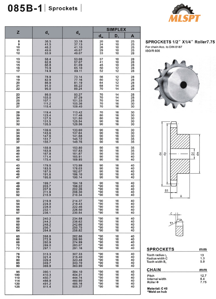 SPROCKETS 1/2”X 1/4” Roller7.75